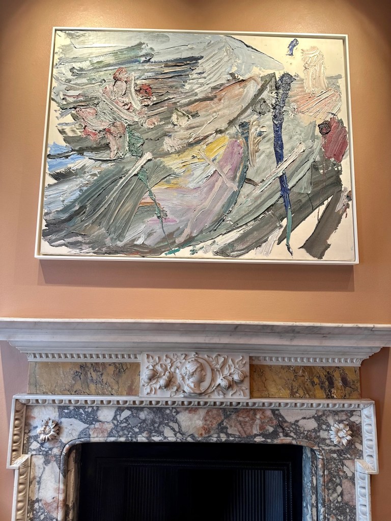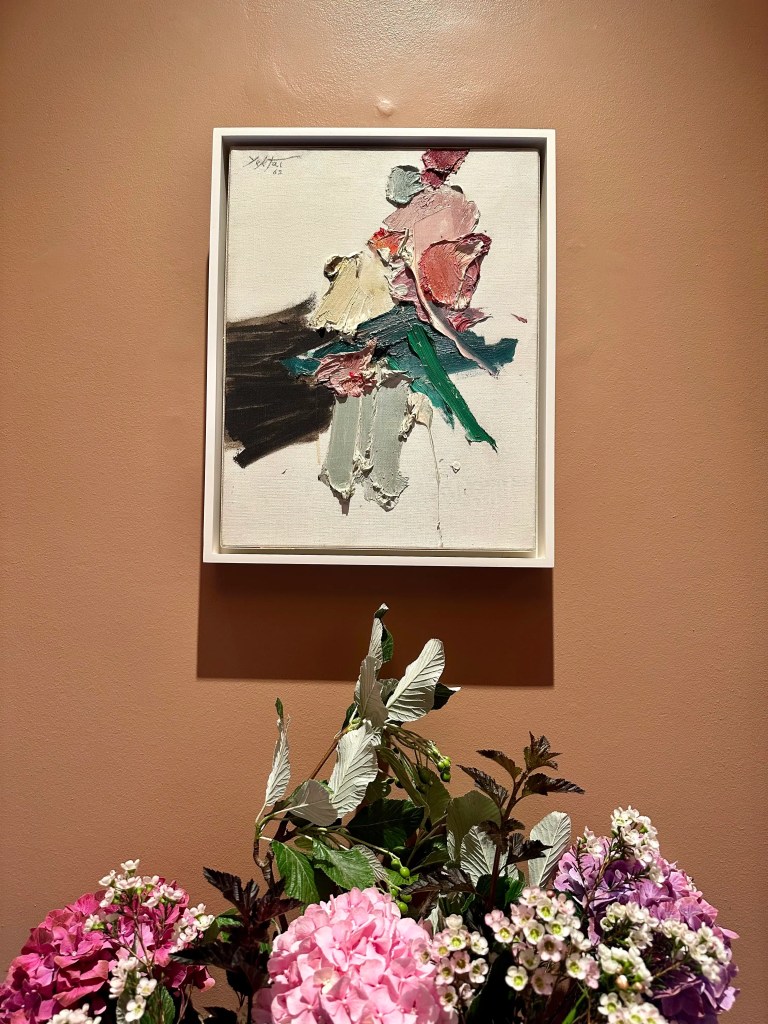 I was planning to save this visit for the Bank Holiday but I was just far too impatient. I did my best not to run up the grand staircase of the club to witness the work. The oil paintings are well laid out and their colour schemes certainly compliment that of the club’s interior design including beautiful flowers dotted around the rooms.