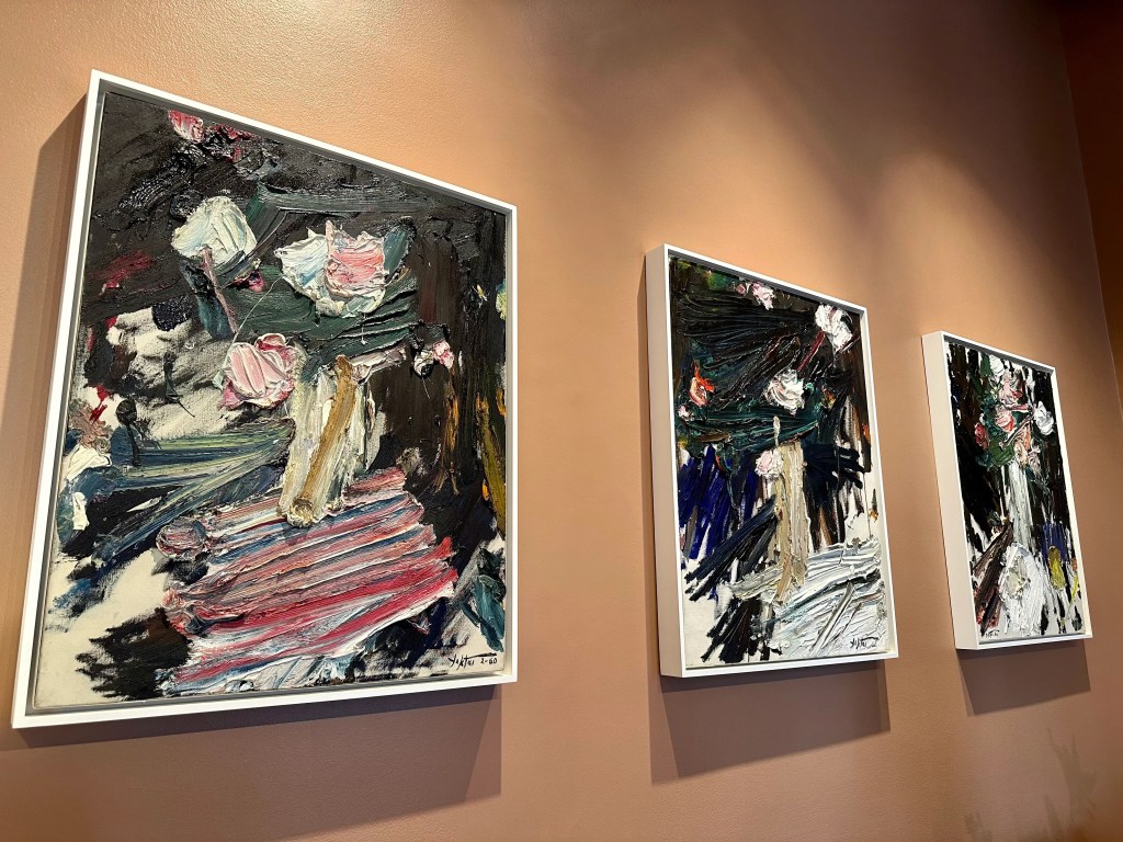 I really liked the variance in the smears, swipes and blots of thick oil paint. It looked as if a palette knife was used to spread paint on: thinner for a background and then very thickly over this to the point where the oil paint became three dimensional.